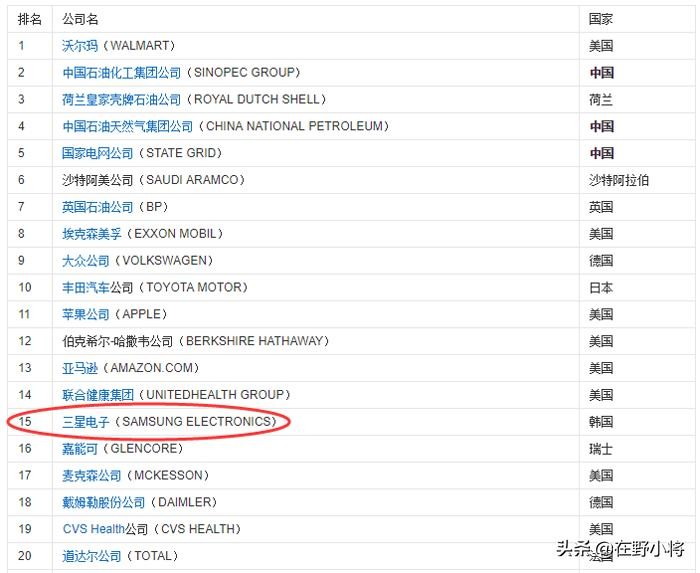 2019年三星电子排名第15
