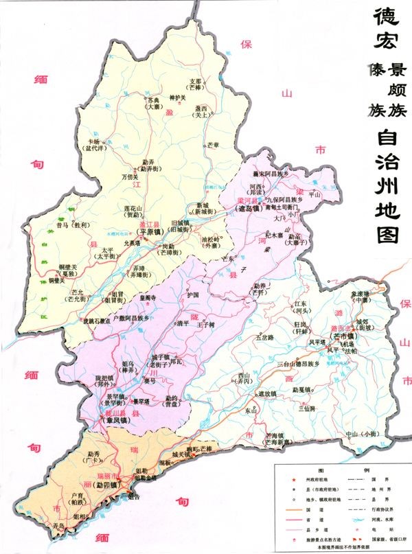 公元1958年10月,莲山县与盈江县合并为盈江县。公元1963年8月,德宏与保山地区的建置分开,德宏州辖潞西、梁河、盈江、陇川、瑞丽5县及畹町镇。公元1969年11月,撤销德宏州,并入保山地区。