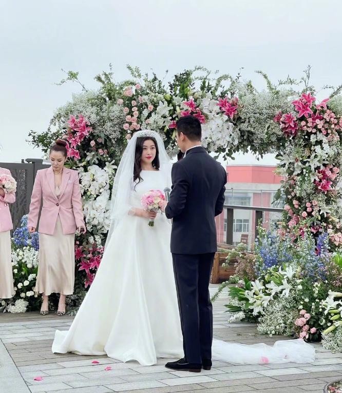 从爆料出来的婚礼现场照片来看,整个婚礼规模小且十分低调,现场只邀请到了新娘和新娘两家的亲友。