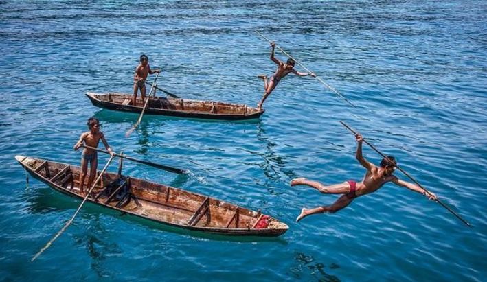 莫肯人因为长期生活在海中,所以他们的孩子从出生以来第一个要学的便是潜水.他们基本生活都是靠在海中捕获鱼类和岸上的人置换生活用品为了生存,他们几乎上每天都要下海捕捞。