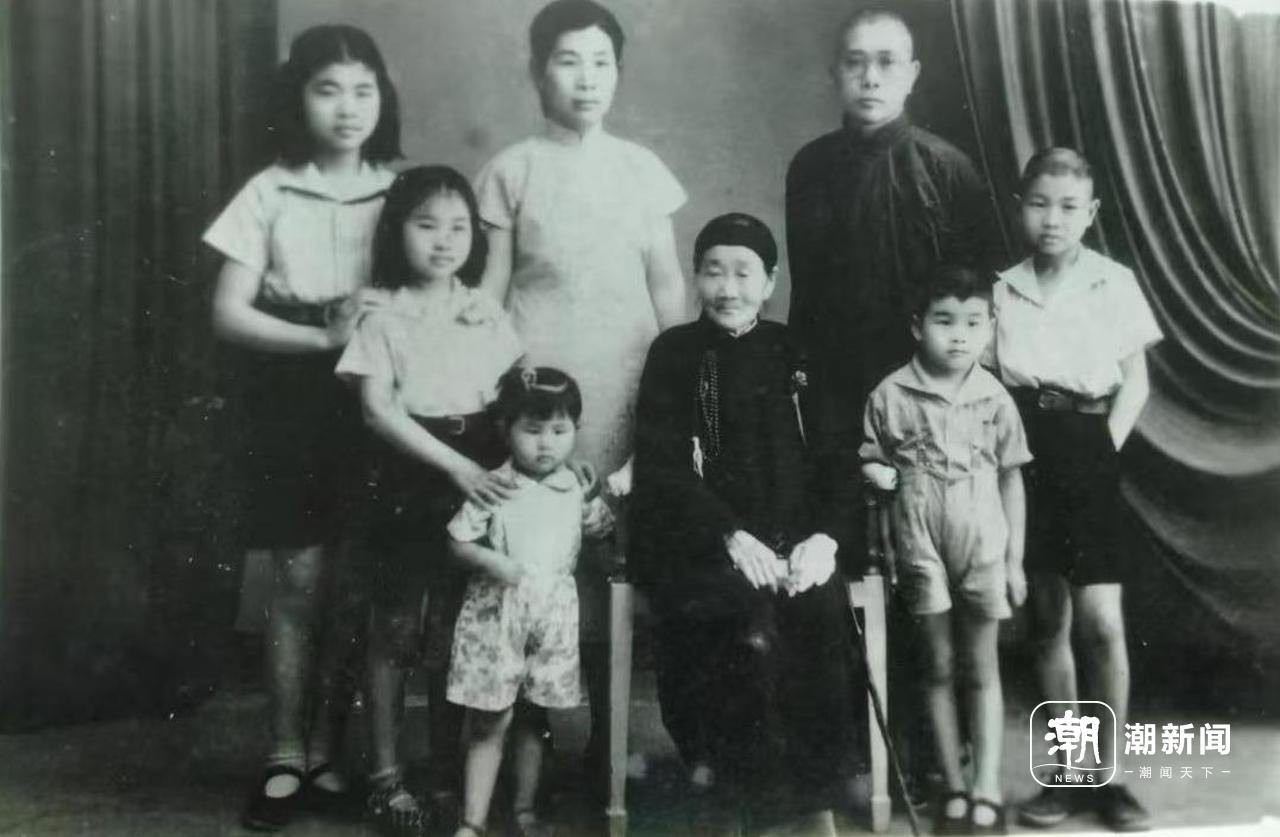 1950年,项飞黄一家回温与母亲合影,项楚的祖母坐在前排,父母站在后排,项楚(右一)与姐姐、弟弟、妹妹站祖母、父母边上。(项勃提供)