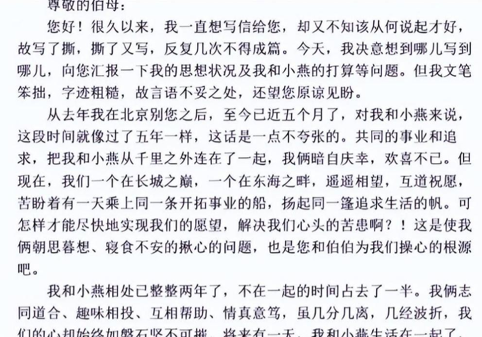 信里他表达自己的真心和决心。