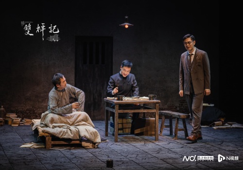《双枰记》的标题“双枰”象征着两盘棋局,分别代表了故友之间久别重逢的残局和三位主角在救亡图存时局中的奔波与挣扎。剧中通过插叙的方式,讲述了卢泊安在狱中为程无右辩护的故事,同时穿插了两位女性角色邵玉筝和冯小寒的视角,展现了底层人民对文人墨客的世俗眼光。