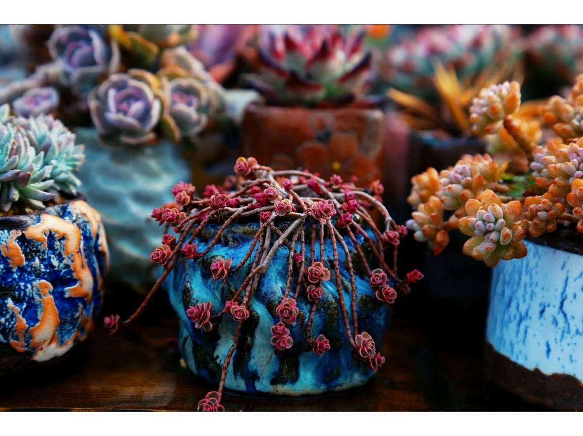 在进行多肉拼盘时,要进行布局,然后针对哪个地方种多大的东西来选择植物。简单来说,还是要保持着前景、中景和远景的原则。前景或者花盆边缘,一般选择铺面草或者比较矮小的多肉;中景可以选择颜色相对比较鲜艳,可以更亮眼的多肉,使之成为整个花盆的亮点,增强画面感;远景可以选择一些比较高的多肉,比如花簪、钱串等,有一种密林的感觉,而且也不会太抢眼。