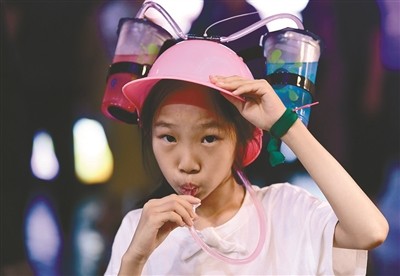 两名身材高挑的女生,在挑选合眼的食物。沟通中,记者了解到,两人在旁边的写字楼上班,刚一下班便直奔夜市。“这里不但有吃有喝,还有美景,每天逛上一逛都有新发现。”一女孩说。