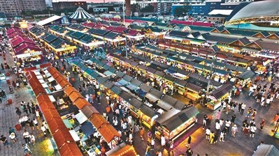 汇集着世界各地特色小吃的塔湾兴顺国际夜市历经四载创新发展,逐渐成长为汇集世界各地特色美食、集创意小百、服饰及大型娱乐、各类主题演出为一体的夜间经济综合体。今年沈阳副食集团对塔湾兴顺国际夜市进行了硬件设施全面升级——新建180个固定美食摊位,水电暖全部进户,可为经营业户提供冬季保暖;新建3处仿古二层公共就餐区;新建3处景观公共卫生间,经营区花岗岩景观石路面铺装等。同时,夜市还加强了软件的服务提升——为所有进场经营业户统一办理健康证、所有业户配备白钢货架确保食材不落地;建立追溯档案,加强大品类产品引进检验环节,确保食品安全。
