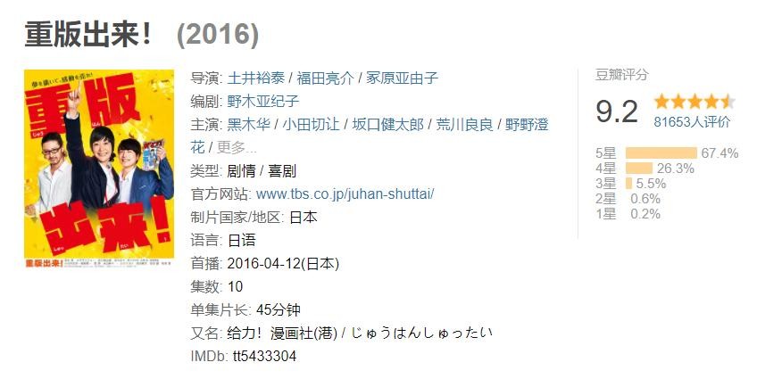 总之,演员演技给力,剧情轻松搞笑,价值观正能量满满,是一部完全没理由不去看的日剧。