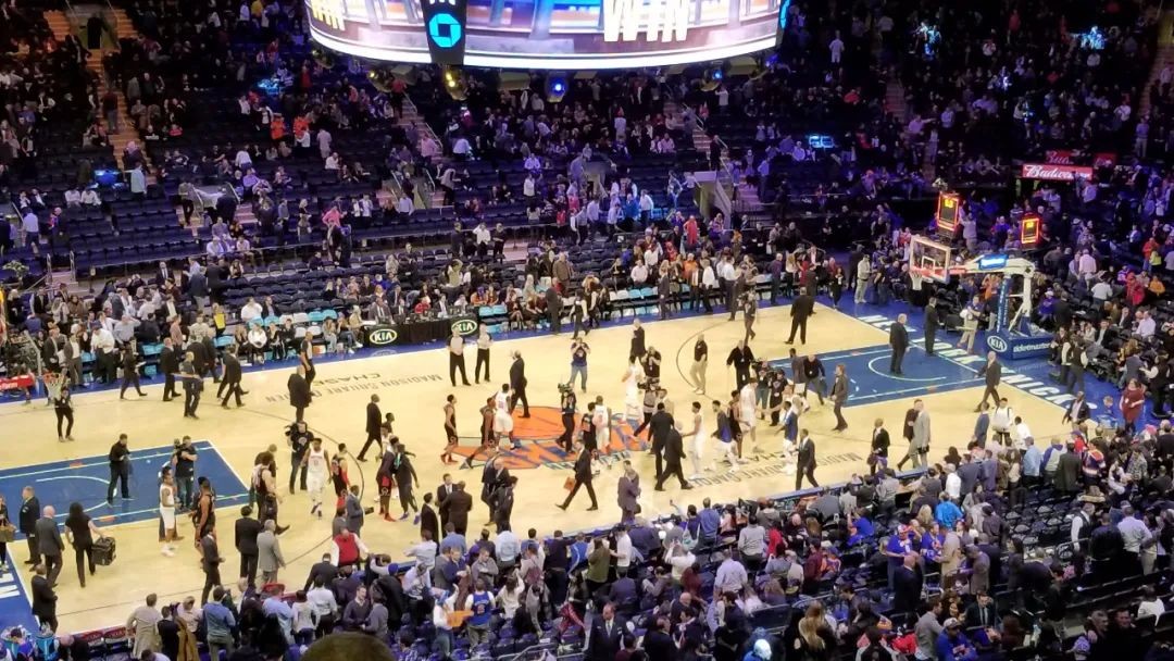 现场的尼克斯球迷全体起立,一万多人高喊 MVP!