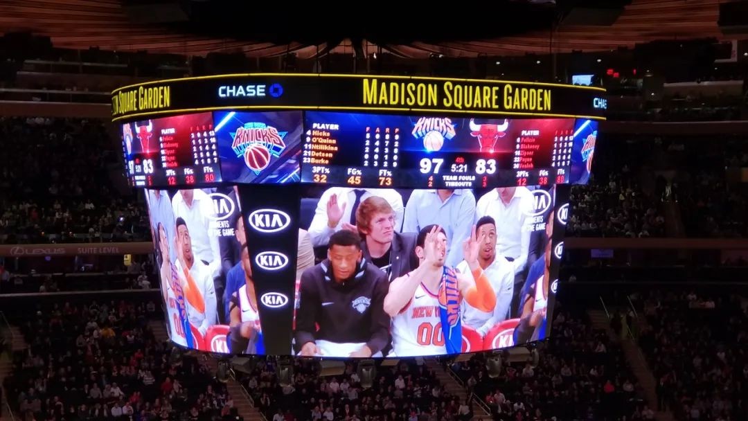 2018年3月20日,莱曼老朱我们一行三人在麦迪逊广场花园观看了纽约尼克斯主场对阵芝加哥公牛队的比赛,那天应该是尼克斯赢了,全场气氛热烈!