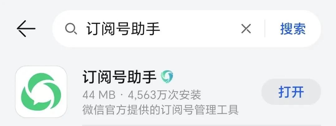 ②在手机应用市场,下载安装“订阅号助手”APP