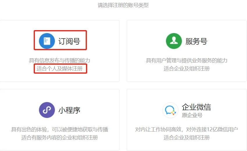 我们个人注册用来写文章/发视频,选择“订阅号”就可以了,我自己的账号也是订阅号。