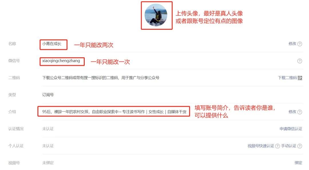 这一步非常重要,相当于开店做生意的门面,一个好的名字、头像和简介可以帮助读者更快记住你。