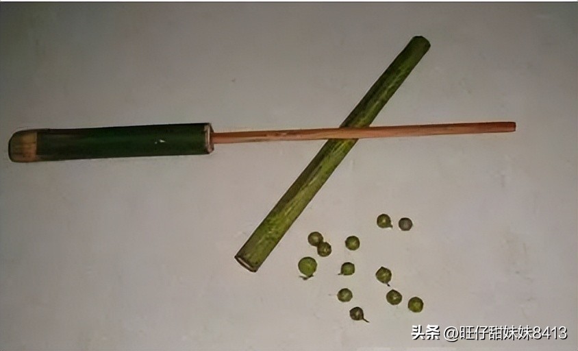 看到青竹子做的枪一下眼眶就湿了,小时候最喜欢竹枪,家乡竹子和箬竹多,山上那种做子弹的小果果也多。绿色、环保、安全无辐射无污染!