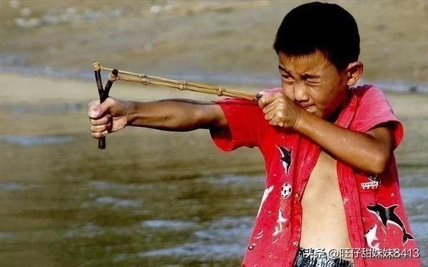 弹弓,我们的小时候男孩子的最爱,弹弓是“Y”字形的,那时候我们在树林找到适合做弹弓把的树杈子绝对不能放过,手握的弹弓用刀削一下,用砂纸打磨一下,要绑上皮子,好一点的是用医生用的黄橡胶皮管或者自行车的内带。弹弓需要橡胶带,太难弄了,赶集天有卖的,但是乡里娃几乎没有零花钱。然后一群小伙伴在一起打弹弓,搞得鸡飞狗跳。