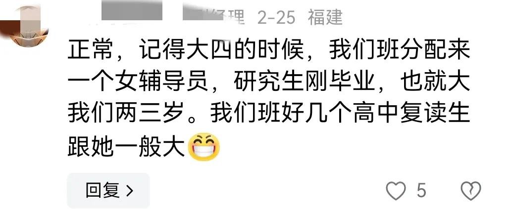 还有网友晒出了自己的经历,表示自己大学时的辅导员也很年轻,就是上一届的学姐。