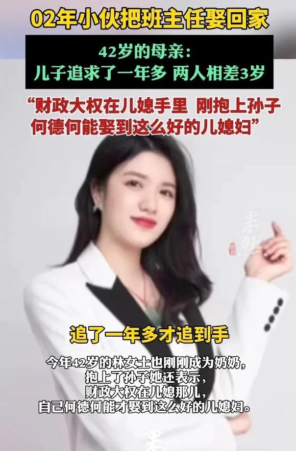 因为林女士表示儿媳是自己儿子的大学班主任,也就是说,学生把老师娶回家了。