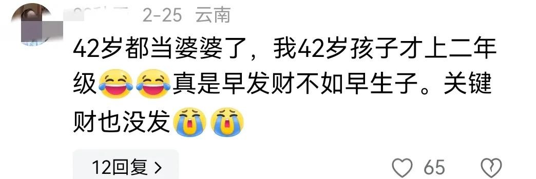 “自己42岁的时候,孩子才几岁,而人家都已经抱上孙子了。”