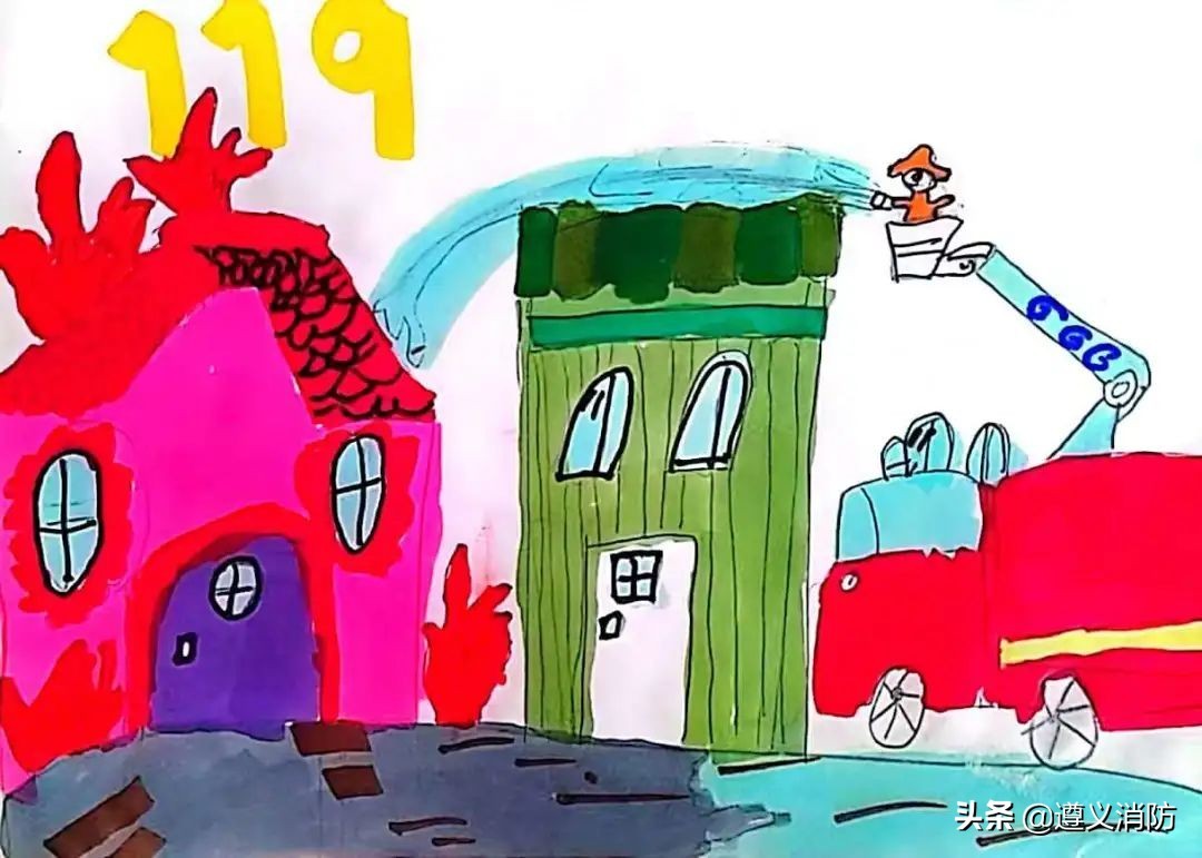 萌趣六一·童画消防 | 快来欣赏!孩子们七彩画笔绘消防