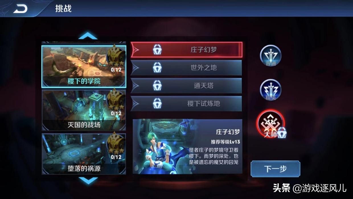 挑战模式和武道大会一样,都属于冒险模式中的一种,对于只热衷于排位、匹配的玩家而言,这个两个获取钻石的渠道往往都会被大家忽略,挑战模式分为三个等级,分别为普通、精英、大师,每个等级有16个关卡,而只要通过这些关卡,则可以获取关卡宝箱,其中可以得到大量的钻石奖励,并且还有挑战币可以在商城中兑换500铭文宝箱。