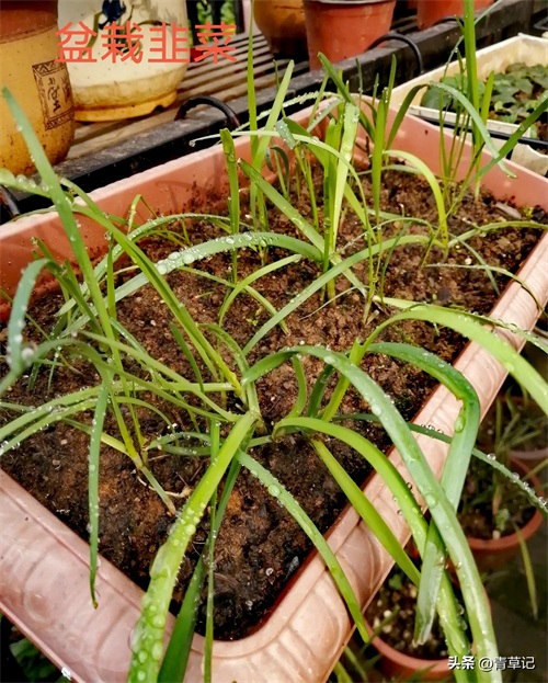 条盆种植的韭菜