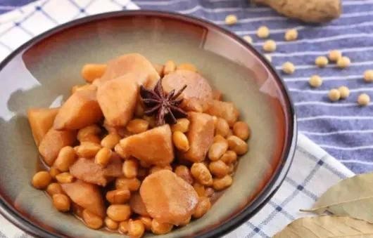 山药炖黄豆 -材料-山药、黄豆、桂皮香叶、八角冰糖、生抽、老抽