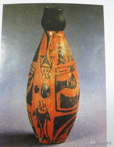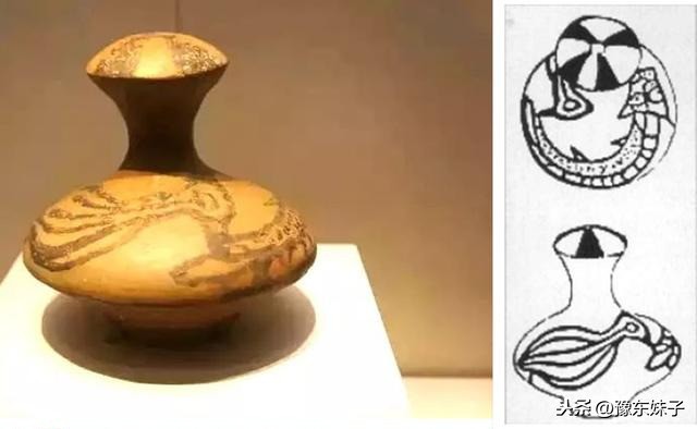 另一个是在陕西宝鸡北首岭出土的属于仰韶文化时期的一件大头细颈的鱼篓形陶瓶,在陶瓶的上腹部画有一副“水鸟衔鱼图”: