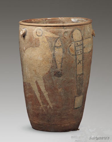 仰韶文化时期 鱼篓形陶瓶 鸟啄鱼纹 “水鸟衔鱼图”