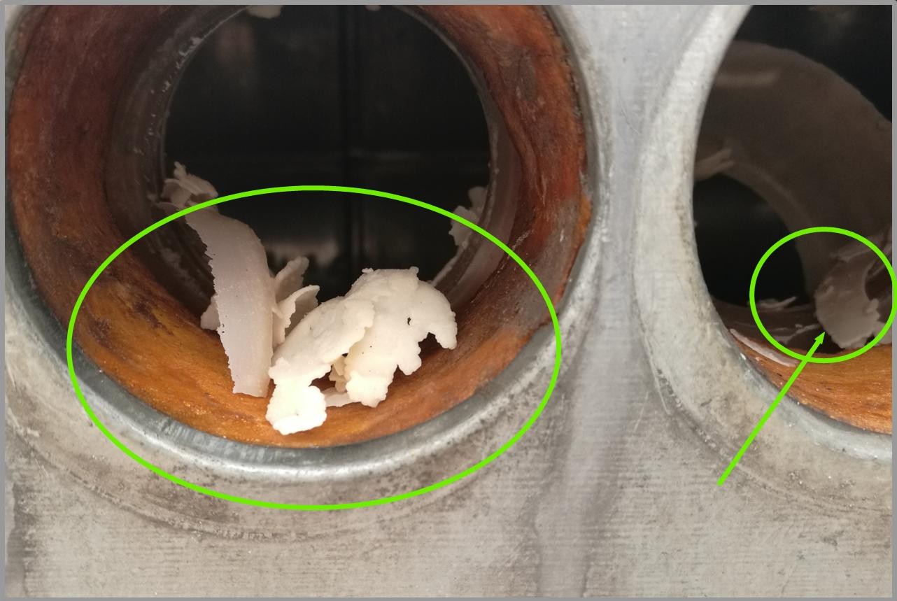 这一步是清理水垢的第二关键点。因为是自己动手,没有专用工具,为保护保温桶内壁,可以找一个容易弯曲、硬度不很高的铝质物品,或其它厨房工具,耐心逐个孔掏出底部沉淀的片状水垢,最后从进水管向太阳能加入大量的水,反复冲洗一下即可。
