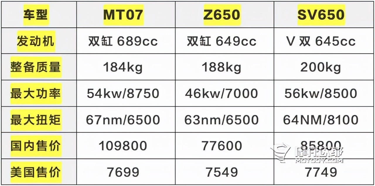 在发动机方面新款与老款并无区别,搭载着的都是一个同一个发动机,实际排量689cc,最大功率为54kw/8500rpm,最大扭矩为68nm/6500rpm,这份数据大家可能没有一个直观的感受,我们对比一下日系在产650cc双缸街车你就能发现雅马哈的牛逼之处。