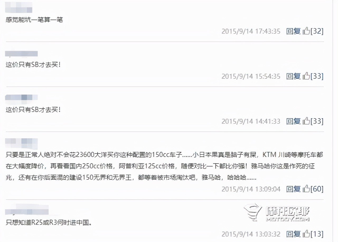 市场不好,手握R1你也卖不出去,雅马哈已经用自己的经历验证过了。