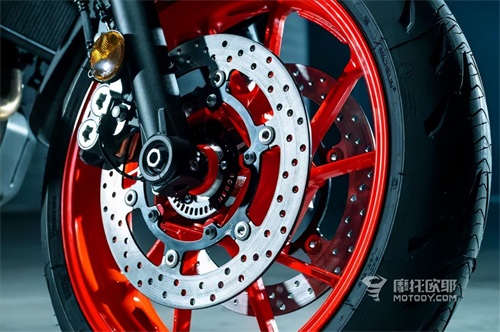 减震方面维持原状,前减依旧是41mm的正置式减震不支持调节功能,后中置减震,支持预载与回弹阻尼调节。