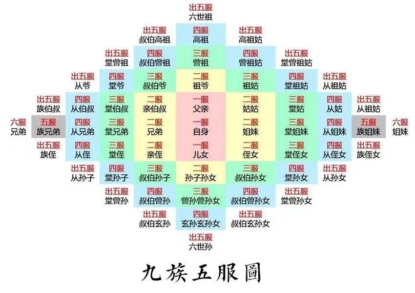 ▲来源:吕梁高氏宗亲会 九族五服图