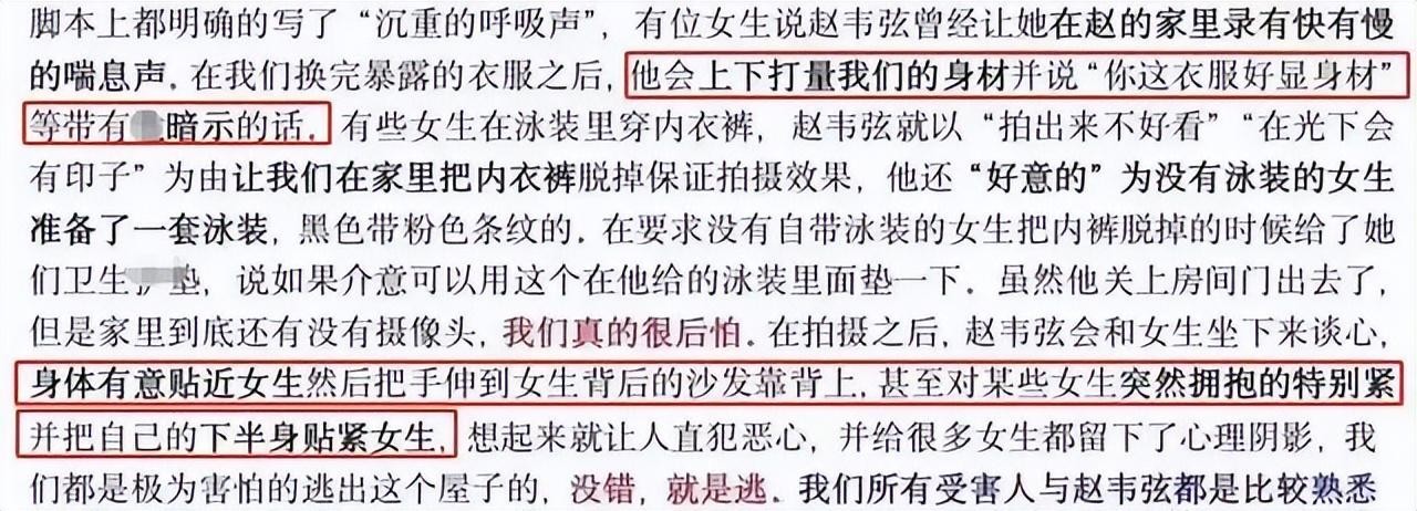 赵韦弦还经常对前来拍摄的女生“动手动脚”,会故意挨着女生,然后突然拥抱的特别紧,甚至把自己的下半身紧贴女生......