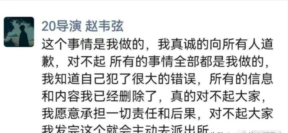 眼看舆论越来越大,自知前途无望的赵韦弦在朋友圈发文道歉,他决定去派出所自首。