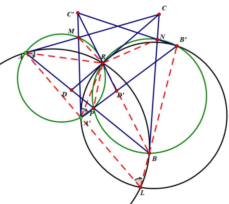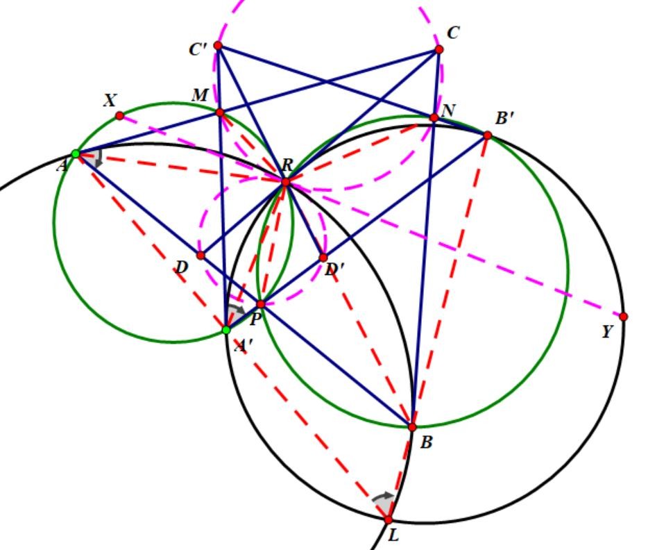 进一步AA',BB'交点L在圆RAB,RA'B'上,
