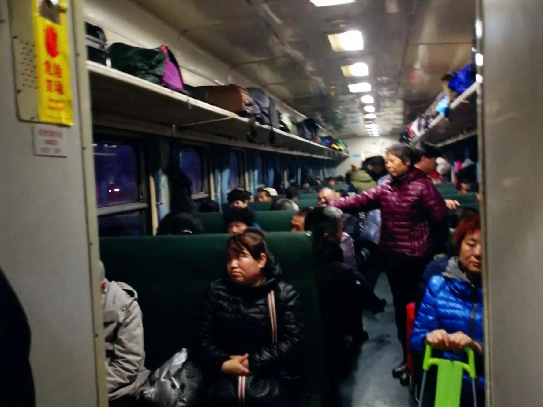 列车行进中的硬座车厢