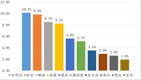 吉顺达在“提供高效便利的增值服务或附加服务”方面推荐率最高,为10.7%;排名最末为深港,为2.4%。