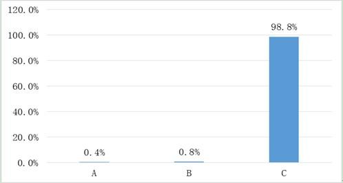 本次调研受访者驾照类型绝大部分为C,占比为98.8%;