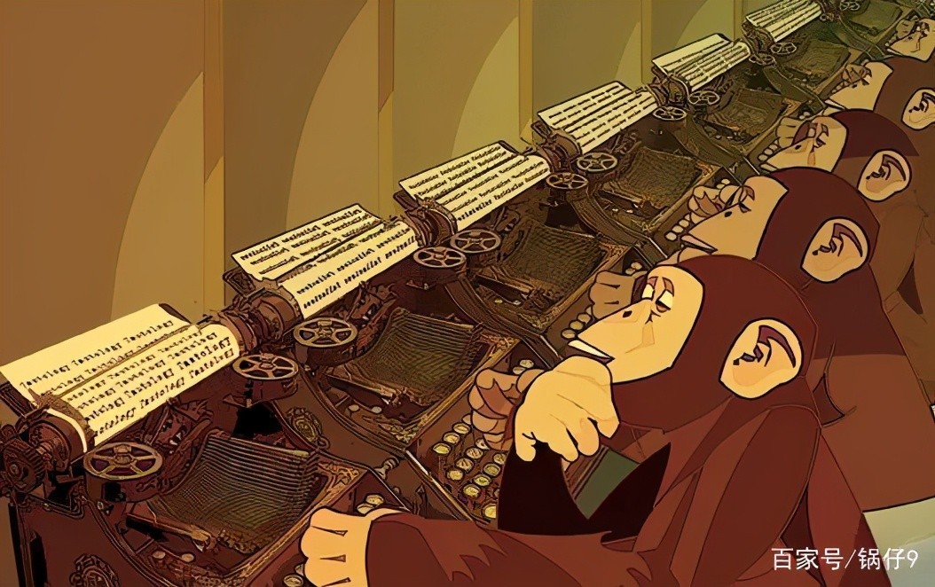 6台永恒的……给猿猴6台永恒的打字机、无尽的纸张与墨水,如果它们也拥有足够的时间,就有可能偶然写出一部诗、一篇莎士比亚十四行诗,或者甚至写出一本书……而它们只是随机地敲击打字机按钮而已。