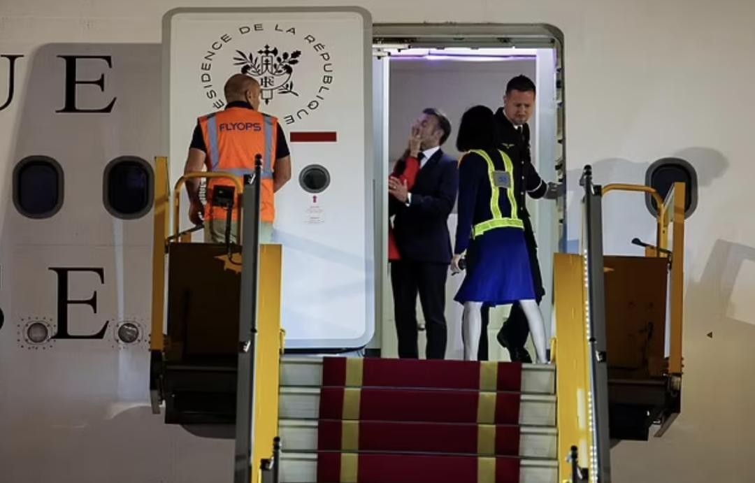 法国这个梗来源于法国总统马克龙最近降落越南时的小插曲。马克龙妻子布丽吉特没注意到飞机门已经开启,还在往马克龙脸上“扇巴掌”。