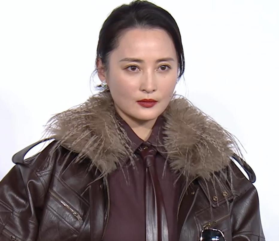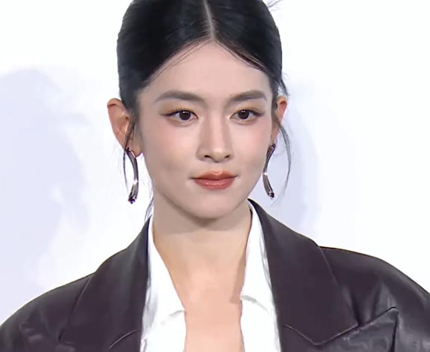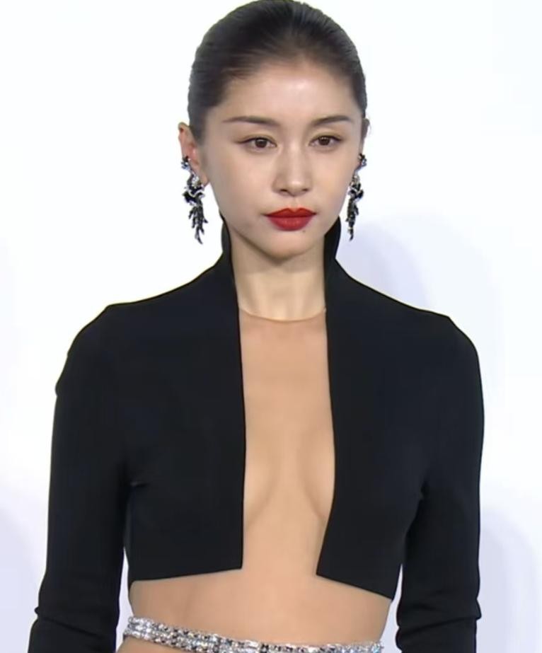 作为影后组打头阵的女演员,余男身穿牛仔套装,上衣故意扣错将半个肩膀和平坦的小腹裸露出来,大背头的发型也更显酷飒。