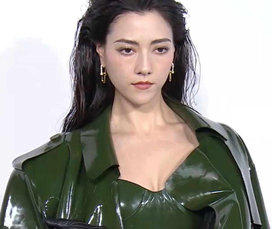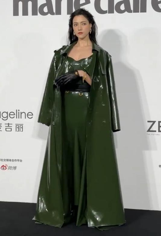 墨绿色套装既没有将娜然的身材优势展现出来,大背头的发型更像是刚从海里游泳回来,亮面的服装给人一种雨衣的既视感,真的不好看。