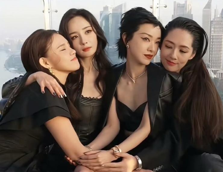 《小时代》中的四位姐妹花再次合体,杨幂、郭采洁、郭碧婷、谢依霖天台同框,暗黑系的造型堪称全员恶人。