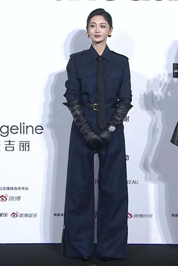 此次活动中,周洁琼身穿藏蓝色空军服登场,黑色皮手套衬托出优雅地气质,头发利落的盘在脑后,身高腿长比例真的太优越了。