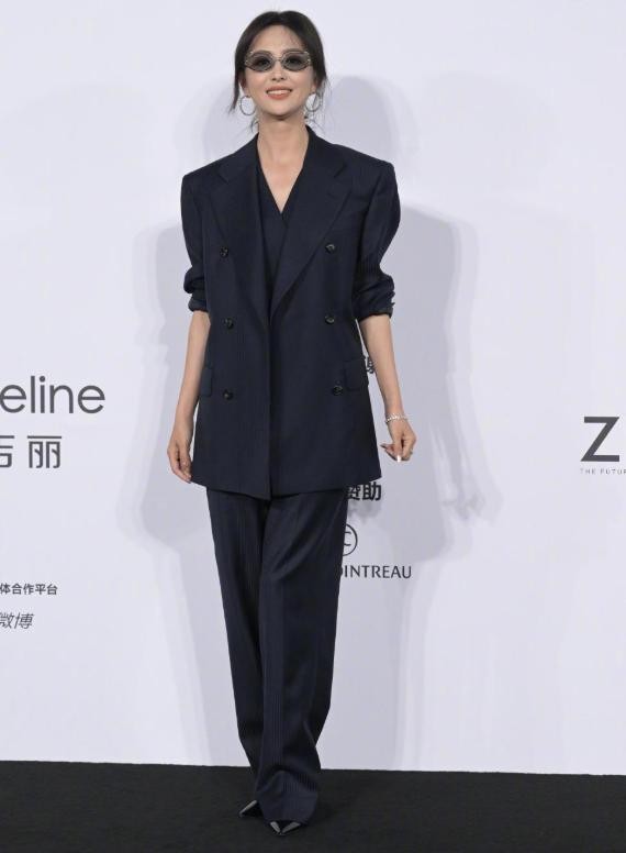 身穿西服套装,戴着墨镜出场,这套造型并没有多么出众,也挑不出错,只不过佟丽娅的状态太饱满了。