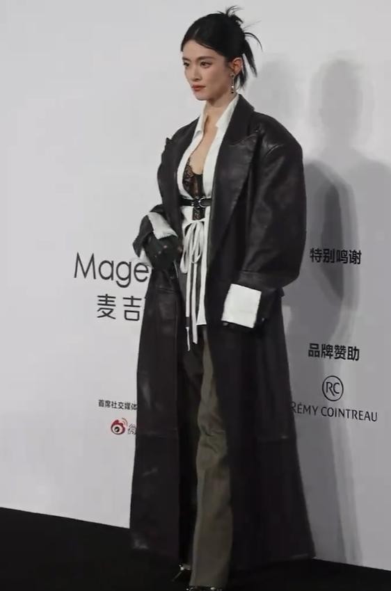 不得不说,此次活动中陈昊宇的造型相当有女人味儿,黑色透视装外搭白色衬衫,外套黑色皮大衣,性感与飒爽扑面而来,又酷又迷人。
