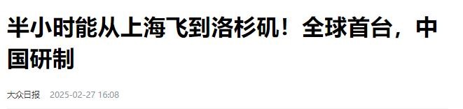 大众日报2025-02-27 16:08——半小时能从上海飞到洛杉矶!全球首台,中国研制