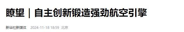 新华社新媒体2024-11-18 18:59北京——瞭望|自主创新锻造强劲航空引擎