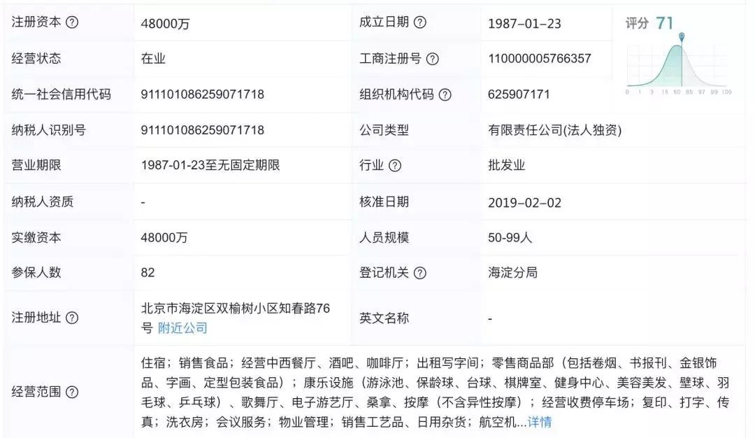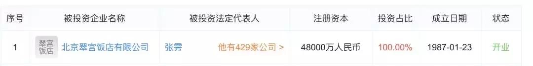 公开资料显示,北京翠宫饭店成立于1987年,注册资本4.8亿元。翠宫饭店隶属于北京首都创业集团,曾经是集客房、餐饮、娱乐、购物、写字楼于一体的五星级商务酒店。目前翠宫饭店五星级资格被取消。