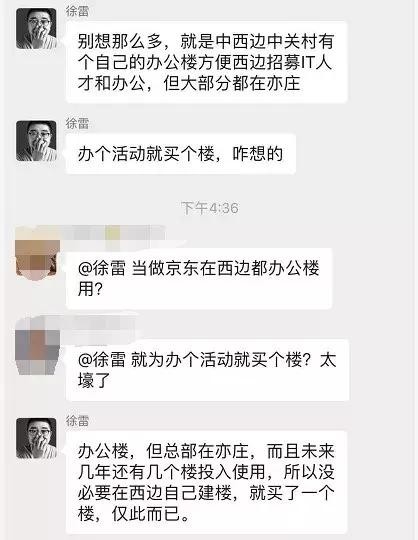 徐雷表示,京东总部还在亦庄,未来几年还有几个楼会投入使用,所以没必要在西边自己建楼,就买了一个,仅此而已。